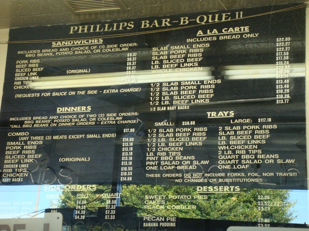 Phillips Bar B Que Menu (Update 2025)